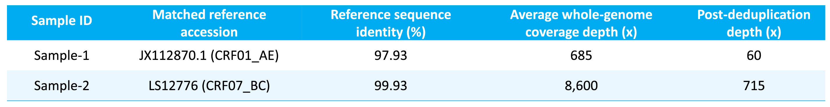 The results showed that the solution consistently generated high coverage of the full-length HIV-1 genome for different subtypes, with high concordance to the reference sequence (Table 1 and Figure 3). This provides a reliable data foundation for downstream in-depth variant analysis, CRF analysis, transmission chain tracing, and drug resistance annotation.