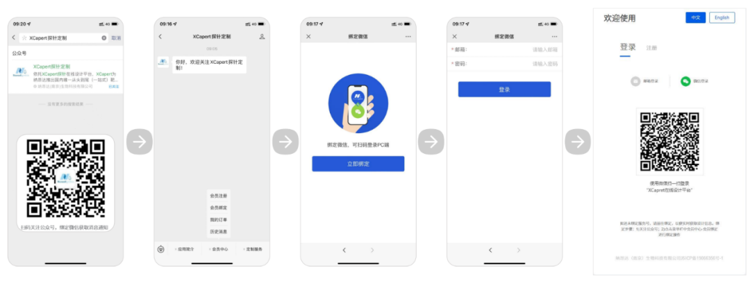 XCapert 探针设计平台绑定微信公众号步骤如下:
