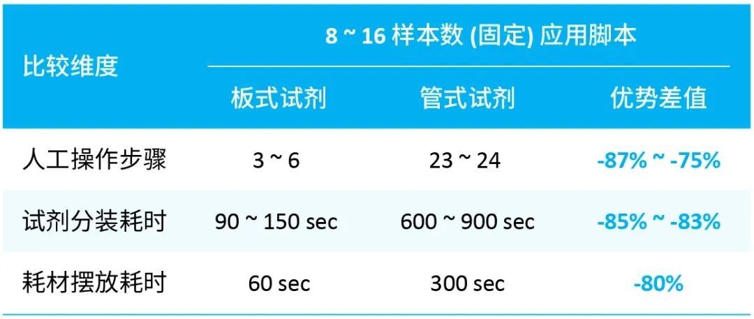 表 1. 板式试剂与管式试剂效能对比。