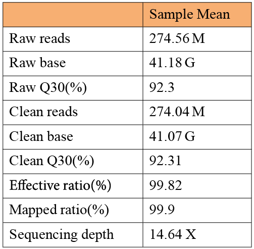 表 1. 测序数据汇总表。表中所示为所有样本指标均值。